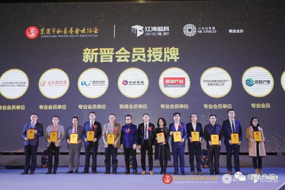 2019年1月23日下午,由东莞市私募基金业协会主办,广东江海盈科控股集团及广东众来达集团联合主办的“资本实战派 建功大湾区”——东莞市私募基金业协会二周年庆暨东莞私募行业颁奖盛典在东城正式举行,来自东莞各主管部门、商协会、银行、券商、上市公司、知名企业、私募机构及媒体代表近千人参加了本次庆典。 绿联产服作为2018年东莞市私募基金协会新晋会员,受邀出席本次活动。